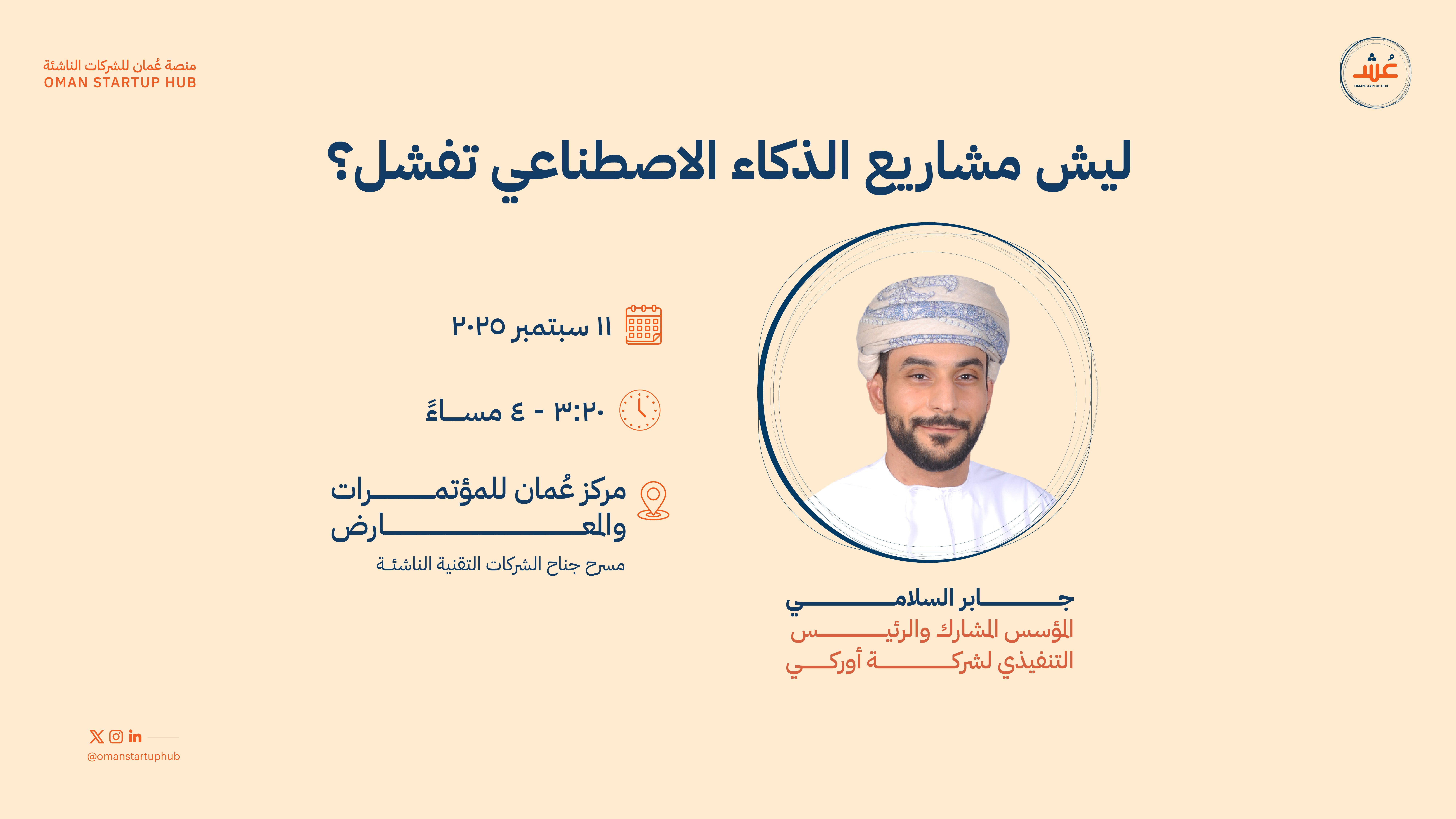 سألت نفسك: ليش تفشل أغلب مشاريع الذكاء الاصطناعي؟ في هذي الورشة بناقش بعض الأسباب اللي تخلي المشاريع تفشل، ونشاركك الطرق اللي تساعدك تبني مشروع ذكاء اصطناعي ناجح ومستدام.