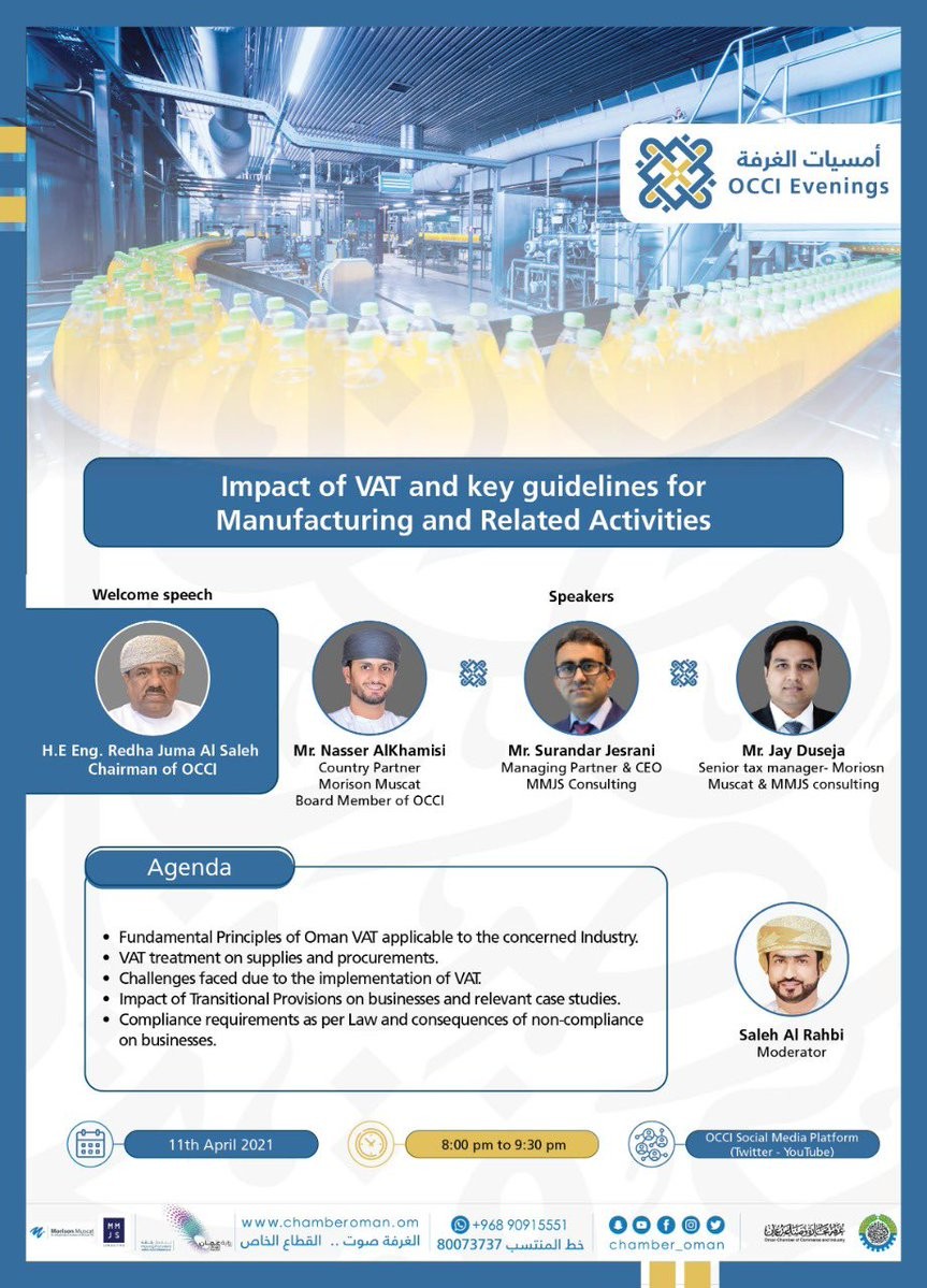 OCCI is delighted to invite you to watch the OCCI Evening about: "Impact of VAT and key guidelines for Manufacturing and related Activities " — 11 April 2021 8:00 to 9:30 pm Youtube