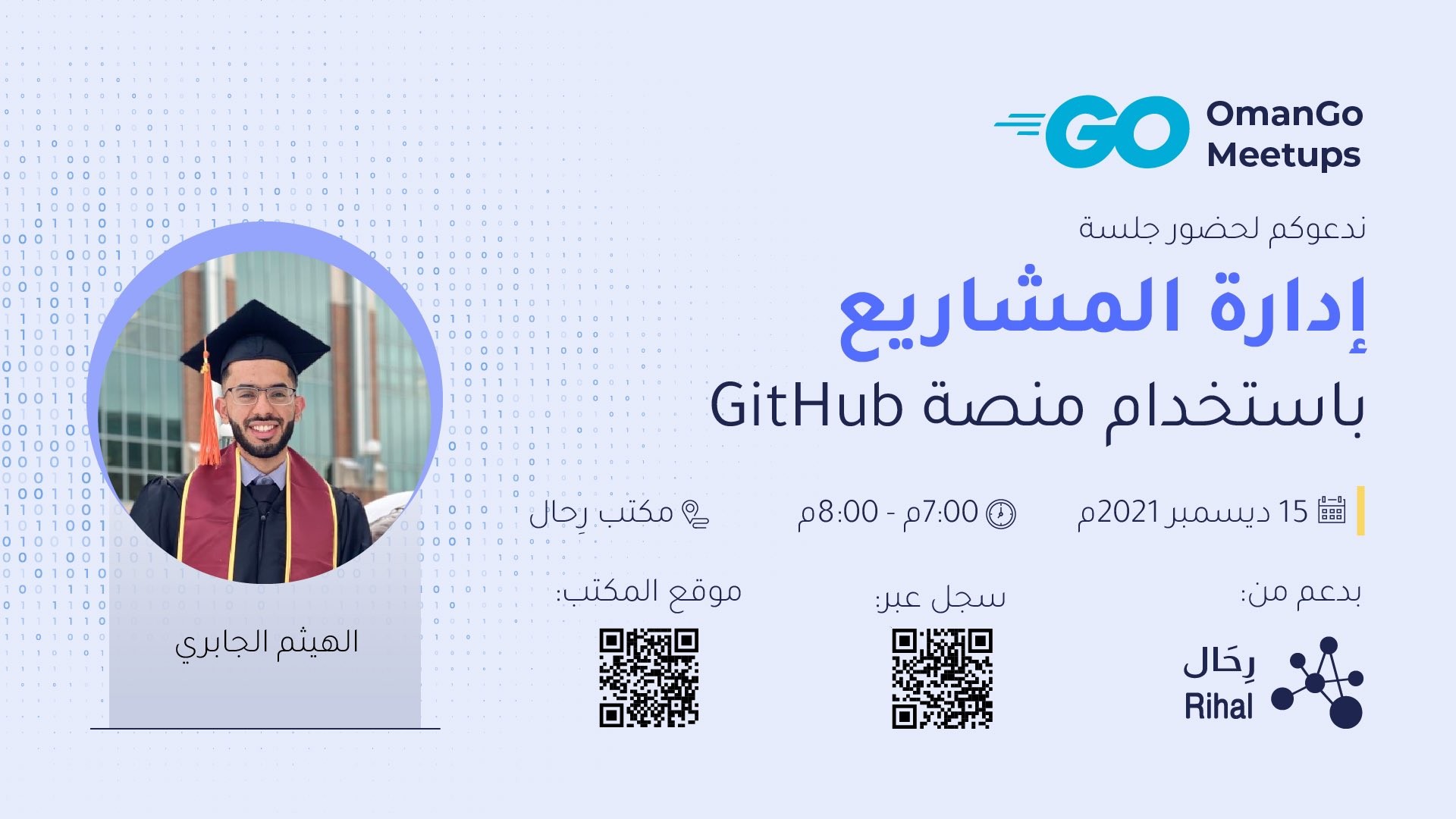 Al Haitham Al Jabri will talk about: “Managing Projects Using GitHub”. We look forward to you all joining us on Wednesday!