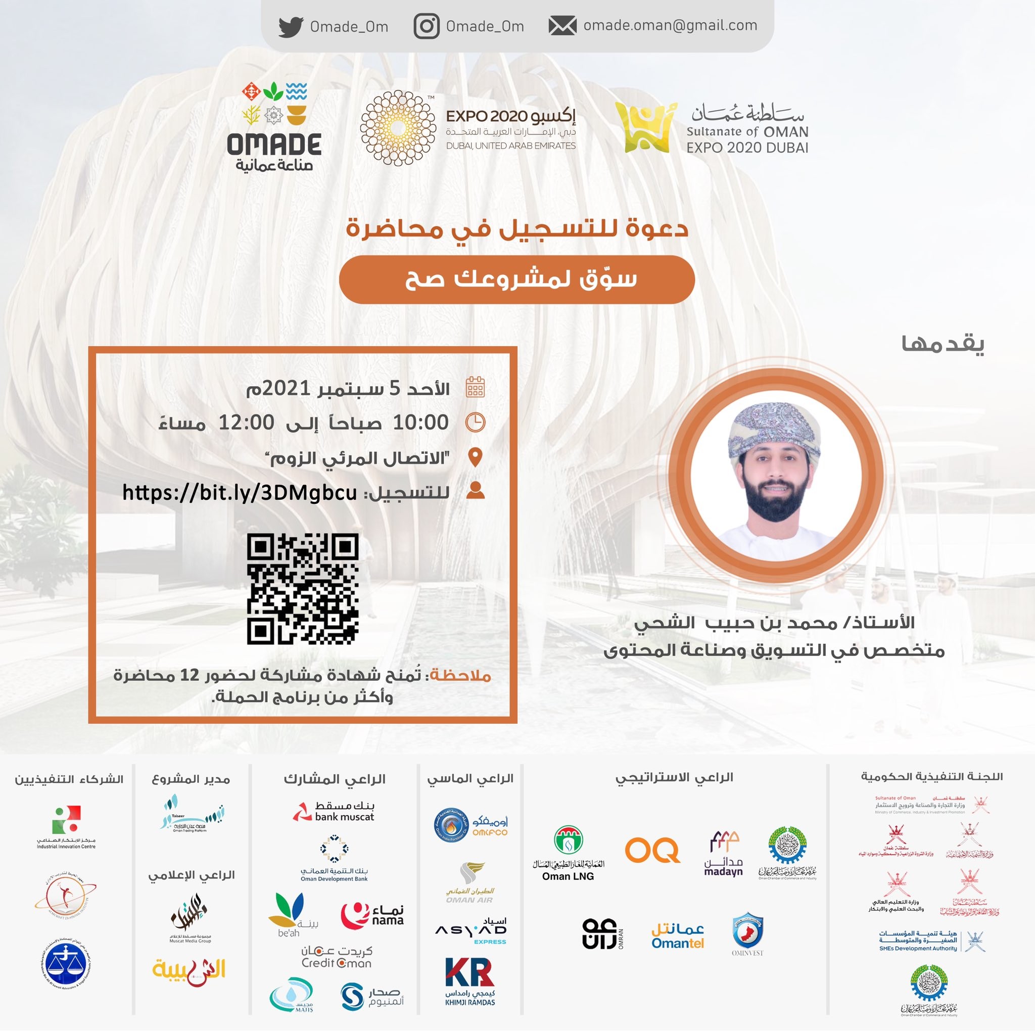 Mohammed Al-Shehhi, a specialist in the marketing and content industry, will present a workshop entitled "Market your project right" to guide participants with marketing mechanisms